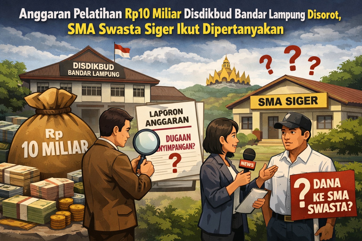PORTAL ASPIRASI- Pengelolaan anggaran pelatihan pendidikan senilai Rp10 miliar oleh Dinas Pendidikan dan Kebudayaan (Disdikbud) Kota Bandar Lampung menjadi sorotan tajam publik. Anggaran yang semestinya digunakan untuk peningkatan kapasitas manajemen dan mutu sekolah itu kini dipertanyakan efektivitas serta transparansinya, seiring mencuatnya dugaan penggunaan dana untuk belanja konsumtif dan polemik operasional SMA Swasta Siger.