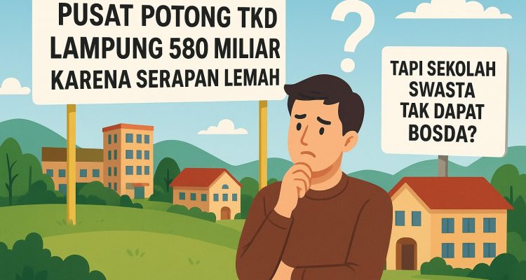 Bingung! Pusat Pangkas TKD Lampung 580 Miliar, Sekolah Swasta Masih Tersisih dari BOSDA Lampung Terkini|October 9, 2025by Yusuf PORTAL ASPIRASI— Pemerintah pusat mengejutkan publik dengan pemangkasan dana Transfer ke Daerah