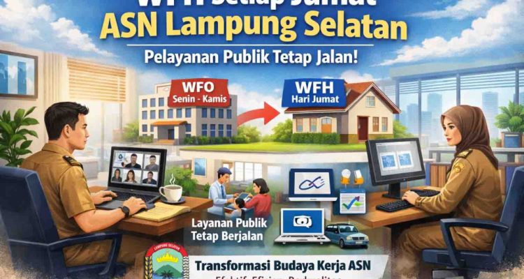 WFH Resmi Berlaku, ASN Lampung Selatan Diminta Fokus pada Output Kinerja Lampung Terkini|April 10, 2026by Yusuf PORTAL ASPIRASI- Pemerintah Kabupaten (Pemkab) Lampung Selatan resmi menerapkan transformasi budaya kerja